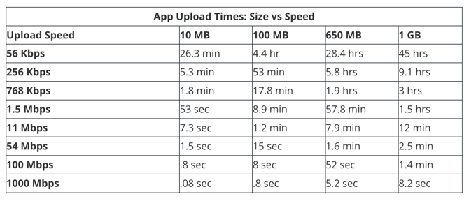 The time that videos and files take to upload to a website is highly dependent on your available Upload speed bandwidth. The FCC legally defines high-speed internet or “broadband” as an internet connection with a Download Speed of 25 Mbps or higher and an Upload Speed of 3 Mbps or higher. If your connection is below that range, it may cause issues with uploading from your device.
