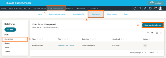 NOTE: If you are an Admin (or a Coach with specific system setting privileges) you will also find other users' completed data forms here.