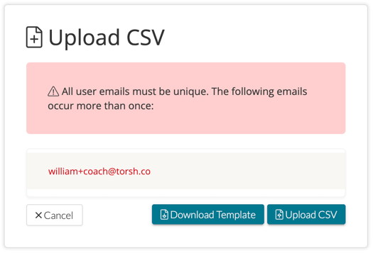 Talent will only accept the CSV file if it is without any errors. If there was an error in your upload, Talent will notify you.