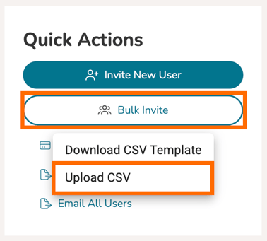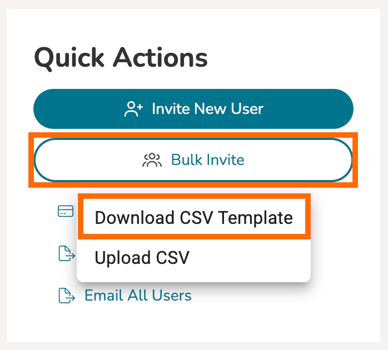 First, go to your Users Management panel. Once on the Users page, click 'Bulk Invite.' In the dropdown, select 'Download CSV Template.'