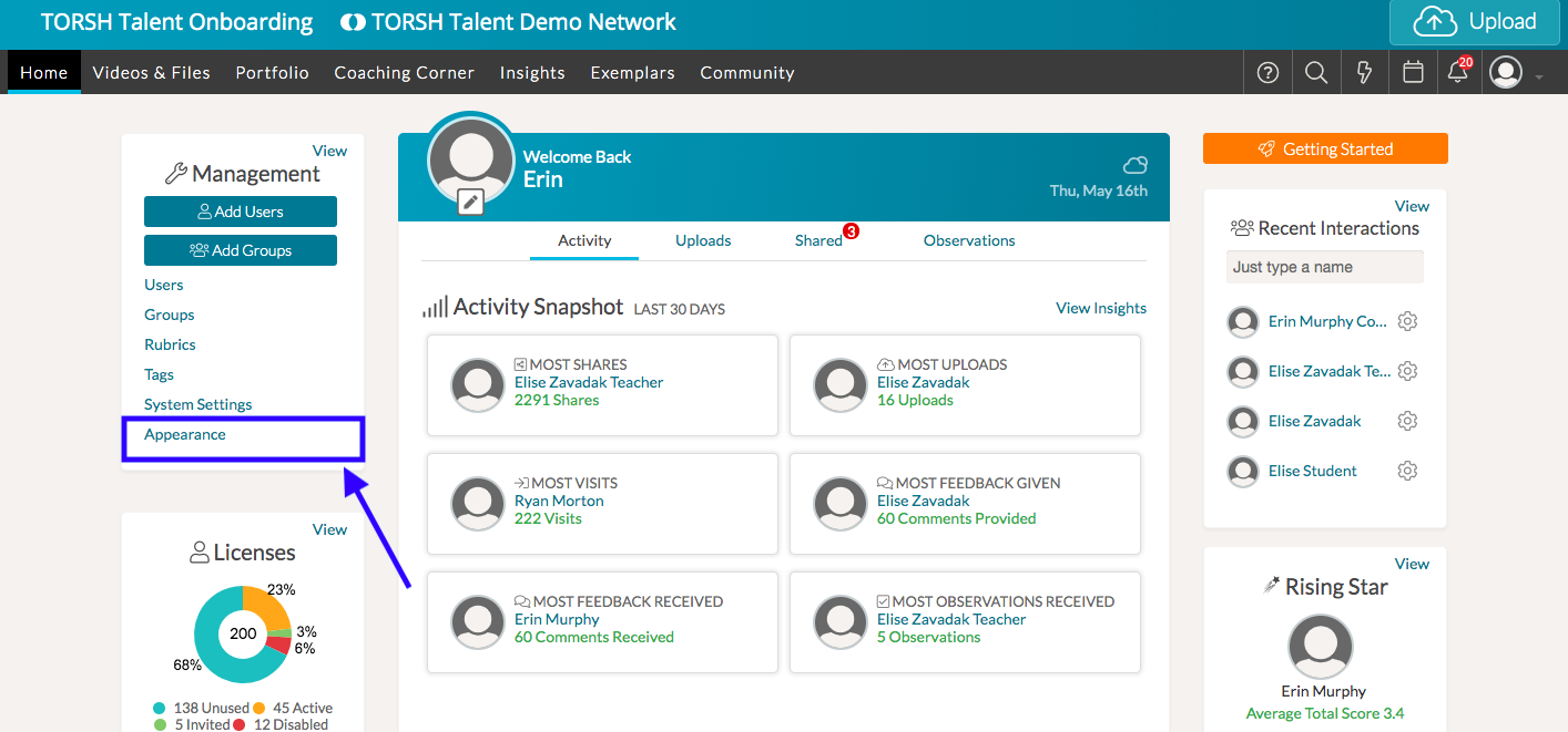 As a System Admin, you can customize the appearance of Talent for your system! You can do this by selecting 'Appearance' on the Management Panel of your homepage.