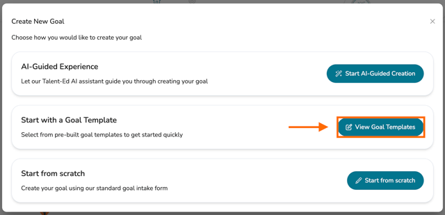 When you go to create a goal, a new pop-up will load, and you will be given various options for authoring your goal. To author a goal based on a Goal Template, choose: