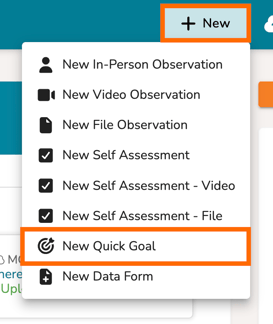 To quickly create a goal for other users using a pre-built goal template, first navigate to the 'New' button in the top, right-hand corner of your Talent webpage and select 'New Quick Goal.'