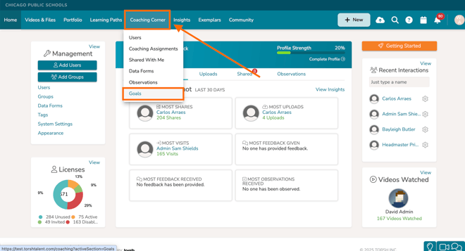 You can also do so by first navigating to 'Coaching Corner' in your top navigation bar. From there, click 'Goals.'