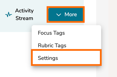 To open a goal's settings, click on the goal's 'More' tab and select 'Settings' from the dropdown menu.