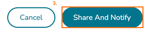 To finalize your share, scroll down the pop-up and click 'Share and Notify.' This will share your goal with the users you selected and added to the table.