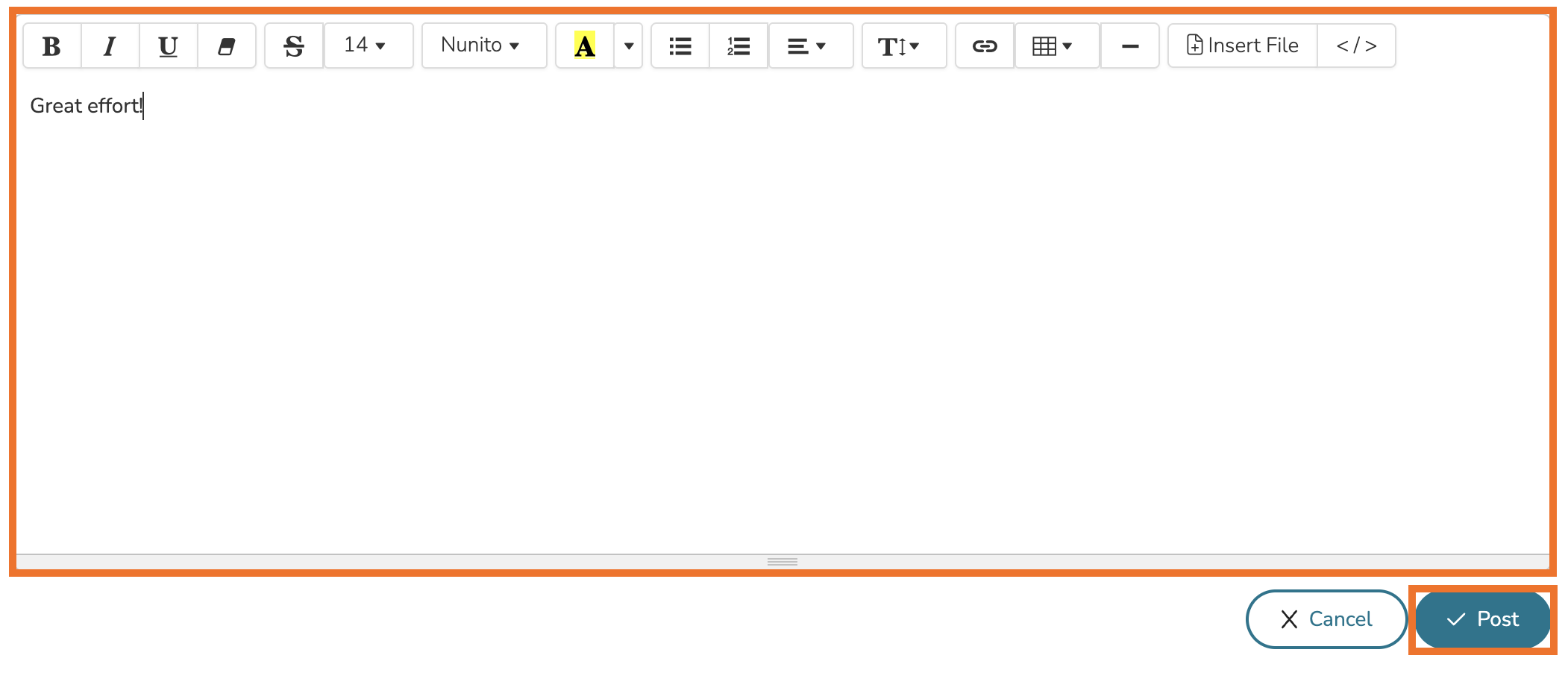 From here, your comment will appear in a comment thread. Others who can view this goal can reply as needed or post new comments in the Reflections tab.