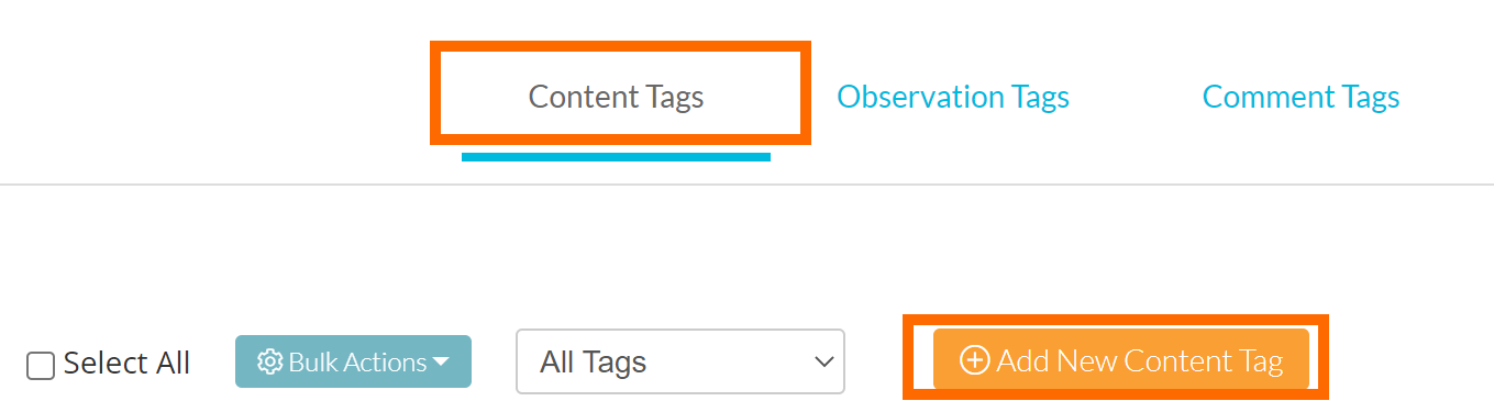By default, this will take you to the 'Content Tags' tab. To create a new tag for your system, click the orange 'Add New Content Tag' button.
