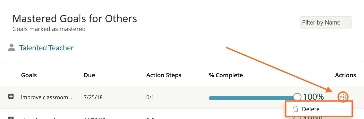 If you wish to delete a goal for a user, you can hover over the Actions icon and press 'Delete.'