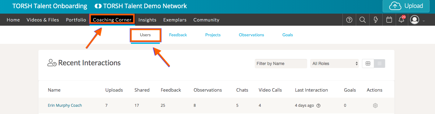 Another way to manage and set goals in your system is to select the 'Users' tab in Coaching Corner.