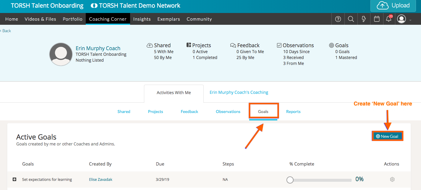 - Admins can set and modify goals for other Admins and for Coaches and Mentees.