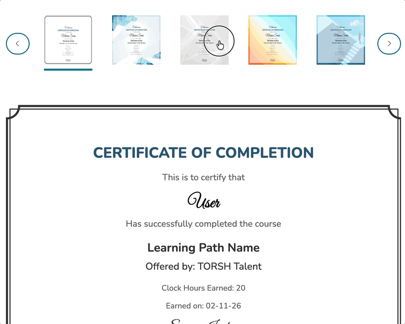 Feel free to choose from the various certificate background options we have available by default! Or choose just a solid color background or a custom background of your own choosing.