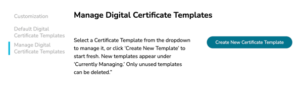 Under the Manage Digital Certificate Templates section of your Learning Path system settings, you will find an option to 'Create New Certificate Template.'