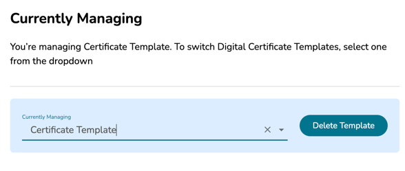 Your new certificate template will then appear under the 'Currently Managing' section. Scroll down to the Currently Managing section.