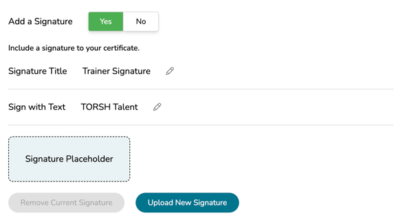 You can also choose to enable the certificate template to display a signature of authorization at the bottom. Provide a Signature Title to display the name of the authorizer in plain text.