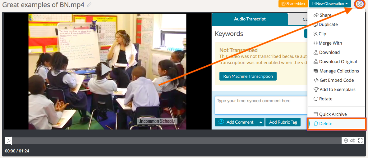 If you delete a video from Talent, the comments and rubric tags associated with the video will be deleted as well, so make sure you export any notes you may need before you delete the video.