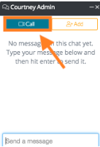 3. In the pop-up chat window, select the blue ‘Call’ button. If you would like to invite more than one user to the Zoom call, click the orange ‘Add’ button and select the users you would like to add.