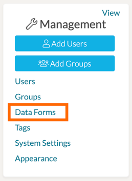 To manage the visibility settings of a data form template, go to your System Settings. On the far, left-side panel click 'Data Forms.'