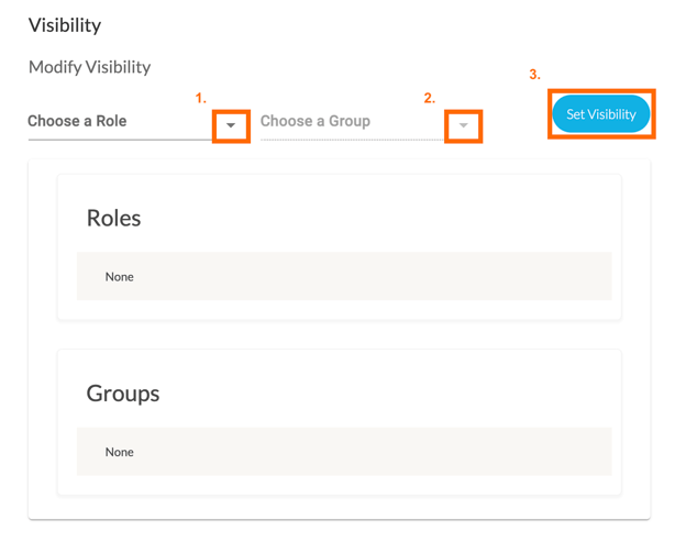 Lastly, you can select the visibility of who can select your template by Role and by Group. Click ‘+Set Visibility’ to save your changes.
