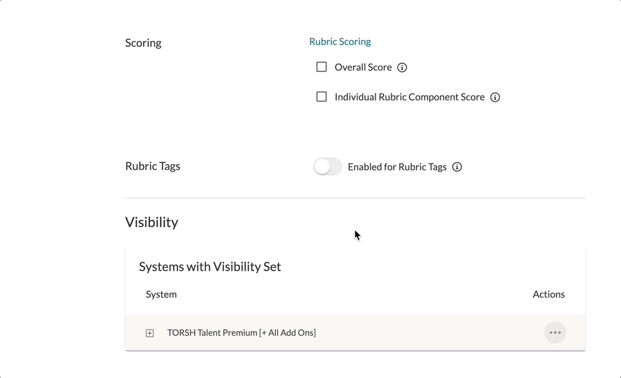 For Rubric Scoring, you can check off whether or not you would like to display the Overall Score to the rubric and/or the Individual Rubric Component Scores.