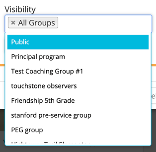 To choose which groups can view the exemplar artifact, click the 'pencil icon' next to Visibility. Then, click in the box and select the appropriate group or groups you would like to have access to this artifact in the Exemplar Library. If you want everyone to have access to the artifact, select ‘All Groups.’