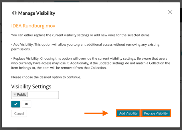 • Add Visibility - This option will allow you to grant additional access without removing any existing permissions.