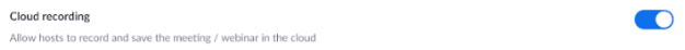 5. Non-HIPAA TORSH Talent Users - Next to ‘Cloud Recording,' enable ‘Allow hosts to record and save the meeting / webinar in the cloud.'