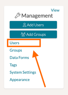 To do so, first navigate to the Management Panel on the left-hand side of your homepage. Then select 'Users.'