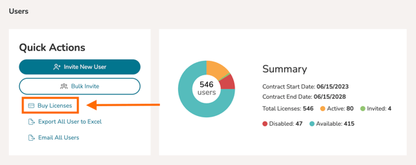 On the Users Management page, click on the 'Buy Licenses' option.