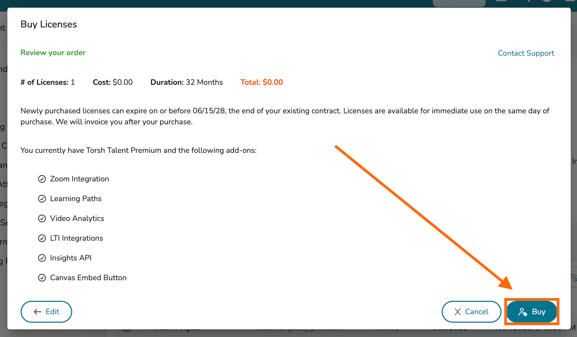 Click 'Buy,' to finalize your purchase. You - and any designated Sales people for your system - will automatically receive an invoice detailing the purchase.