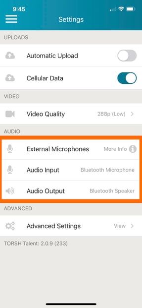 How to record using an external Bluetooth or wired microphone on the TORSH Talent Mobile App