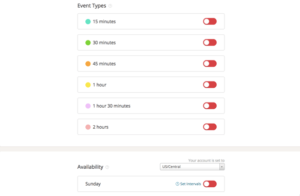 You can then set your preferences for event types, availability, and other settings regarding scheduling.