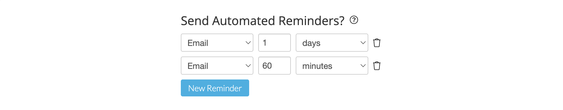 Next, scroll down to 'Send Automated Reminders?' By default, you will have (2) notifications set to email you (1) day in advance as well as (60) minutes in advance. You can edit/delete these options at as you see fit by clicking the appropriate dropdown items.