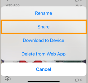 1. To modify the share settings for a previously shared upload in the mobile app, first navigate to the 'Videos & Files' page from your menu. Scroll to the video or file you would like to modify the share settings of and tap on its 'gear icon' in the upper right-hand corner.