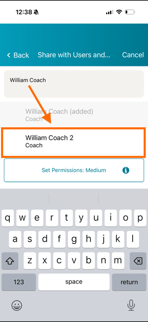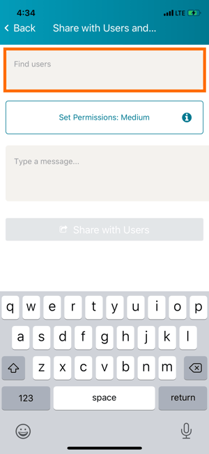 4. On the next page, tap on the 'Find users' field and type in who you would like to share with. The list of users will filter out accordingly.