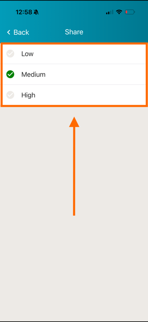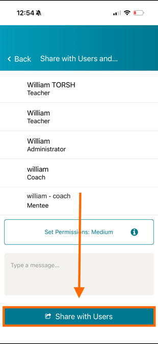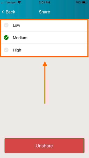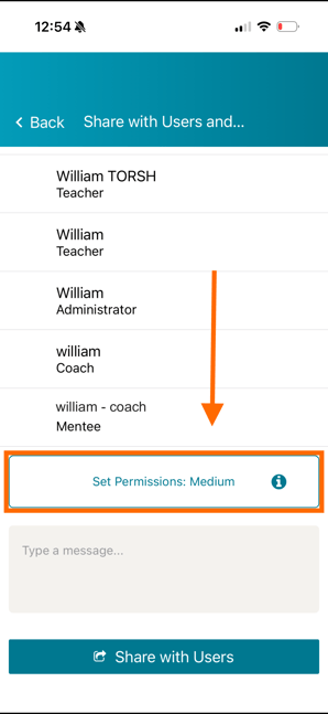 6. Once you have selected the people you wish to share with, scroll down to the bottom of the page and set your Sharing Permission . By default, it will be set to 'Medium.' You can tap on the 'Set Permissions' button to change this.