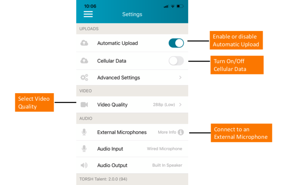 Recording and uploading with the TORSH Talent Mobile App on iOS or Android