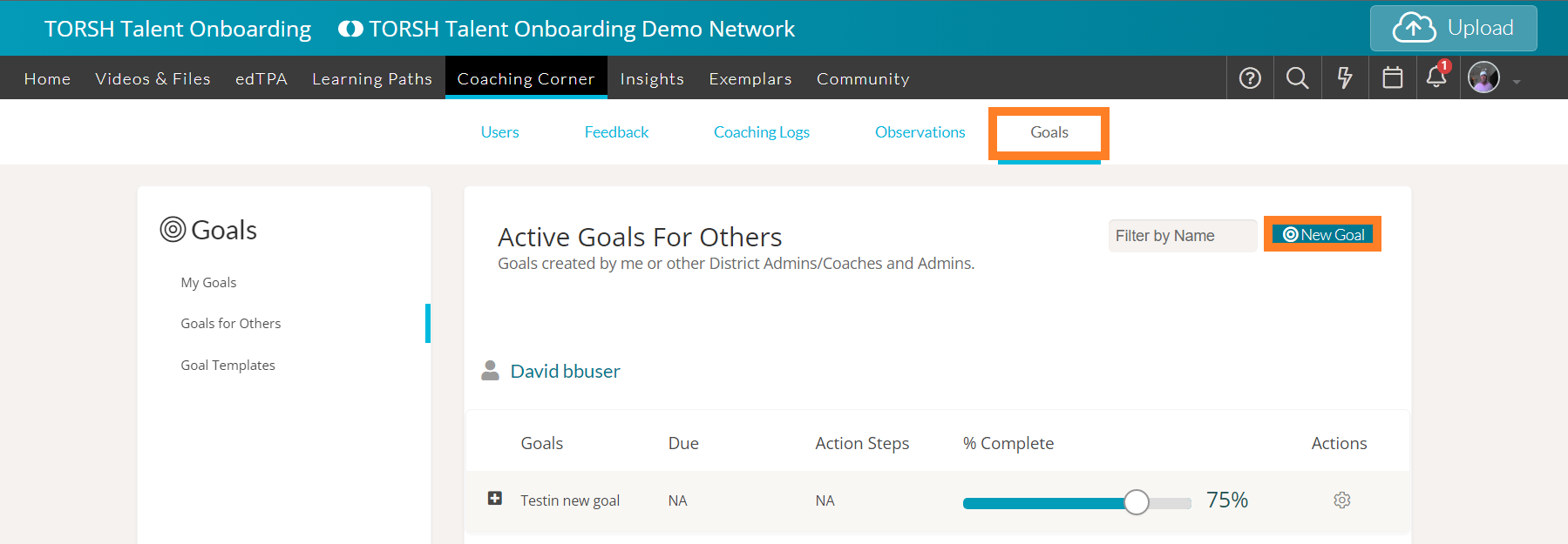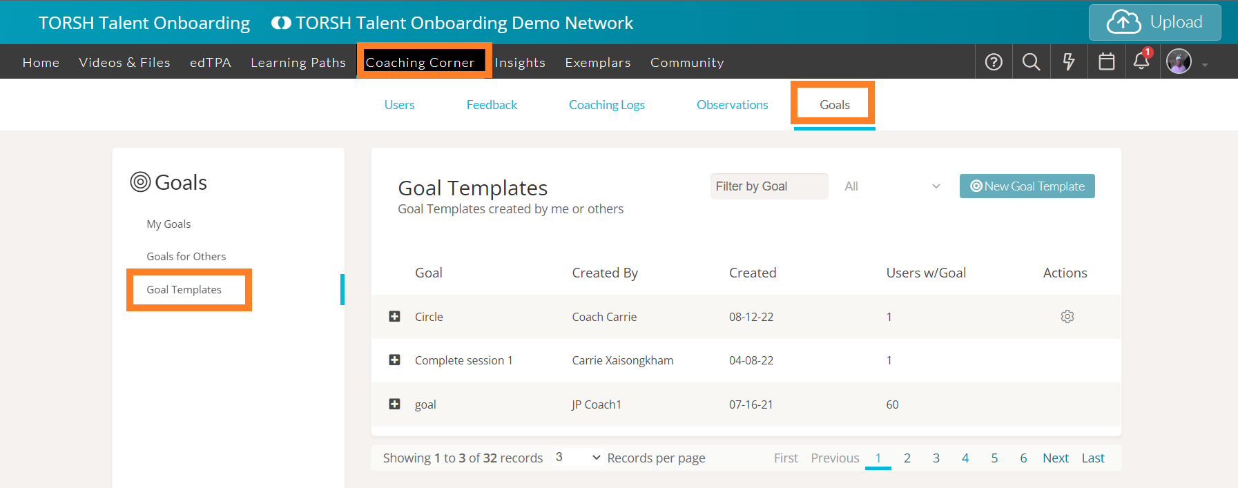 Admins and Coaches can view all of the Goal Templates in the system by navigating to Coaching Corner > Goals > Goal Templates.