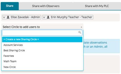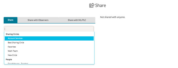 Now when you share an artifact, you'll be able to select the Sharing Circle that you have created from the dropdown menu.