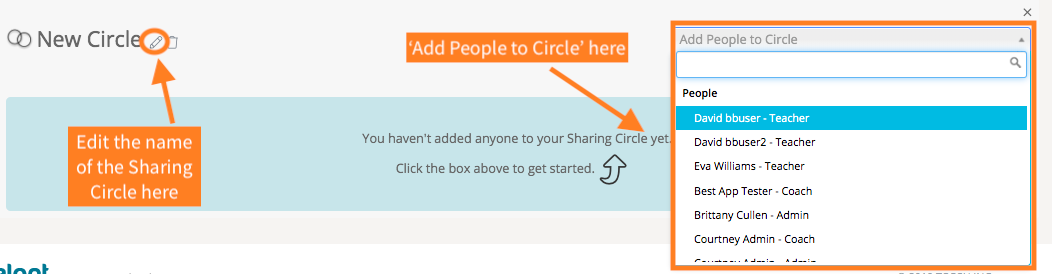 If you select the 'pencil icon,' you can rename your circle. From the dropdown menu, you can select people to add to the Sharing Circle either by selecting their name or by typing their name in the search bar. You can add more people to the sharing circle at any time.