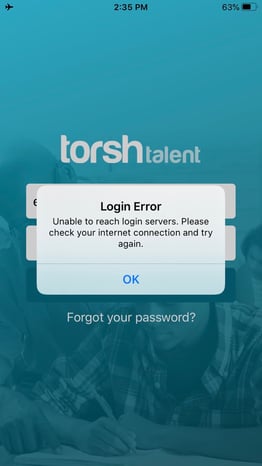 Why is the TORSH Talent Mobile App saying it cannot reach login servers?